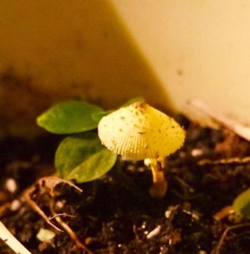 観葉植物の鉢にある日突然黄色いキノコが!生えてきた理由や毒性、成長記録を紹介月にサボテン。