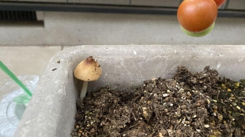 家庭菜園 トマトのプランターにきのこが生えた!?原因と対策。