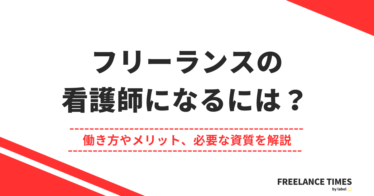 フリーランス看護師の働き方とは?メリット・デメリットを解説 - 美容看護師・美容ナースのための転職メディアビナラボコラム。