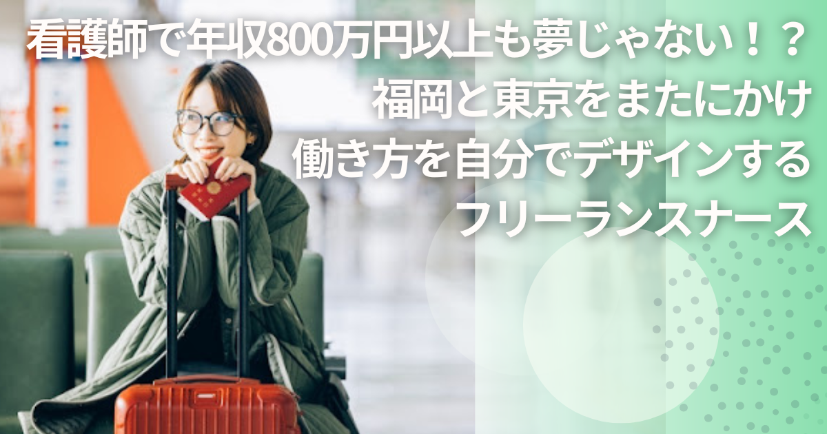 フリーランス看護師で年収800万円以上も夢じゃない?福岡と東京をまたにかけ、働き方を自分でデザインするナースの人生アレンジ。
