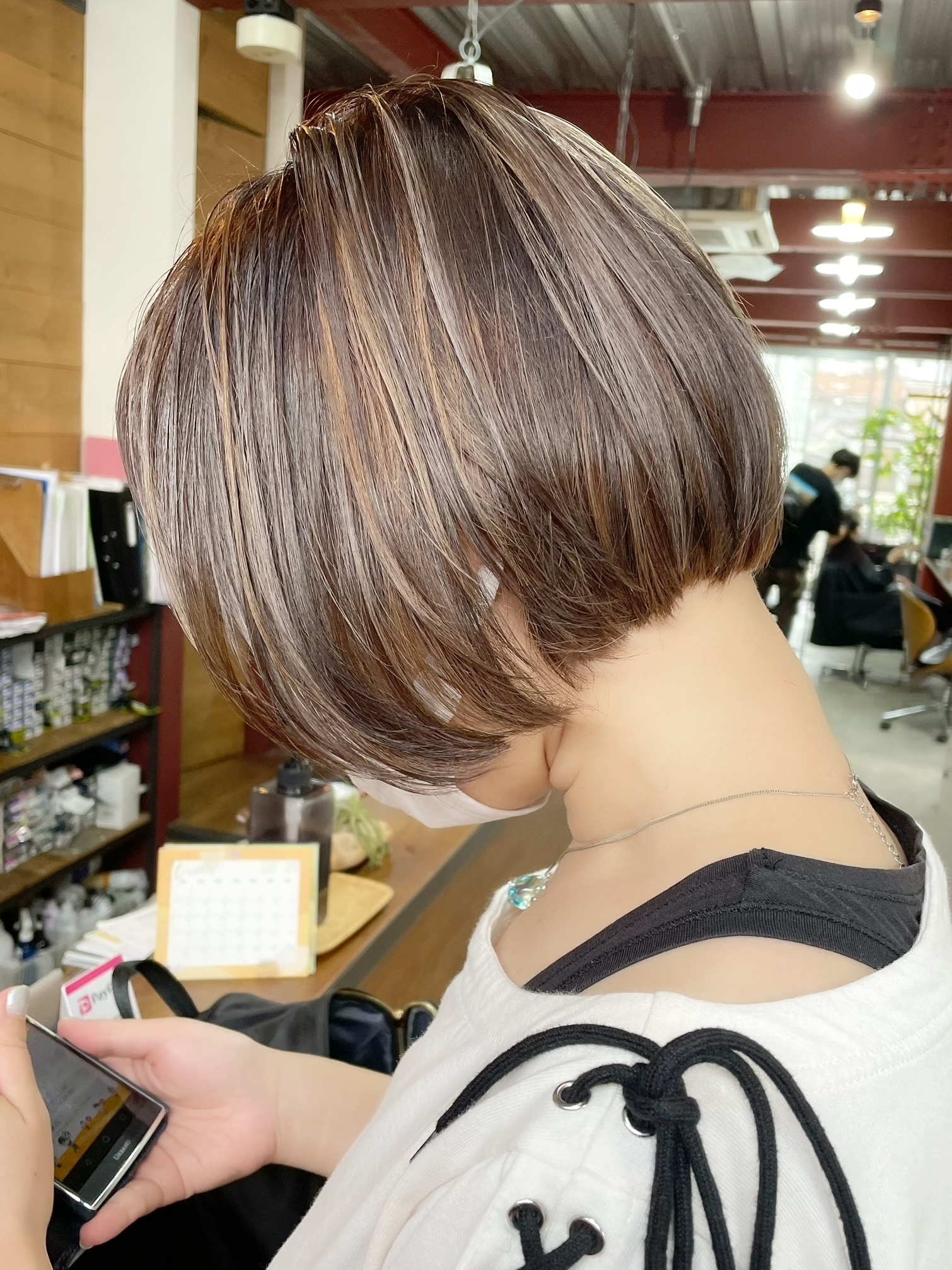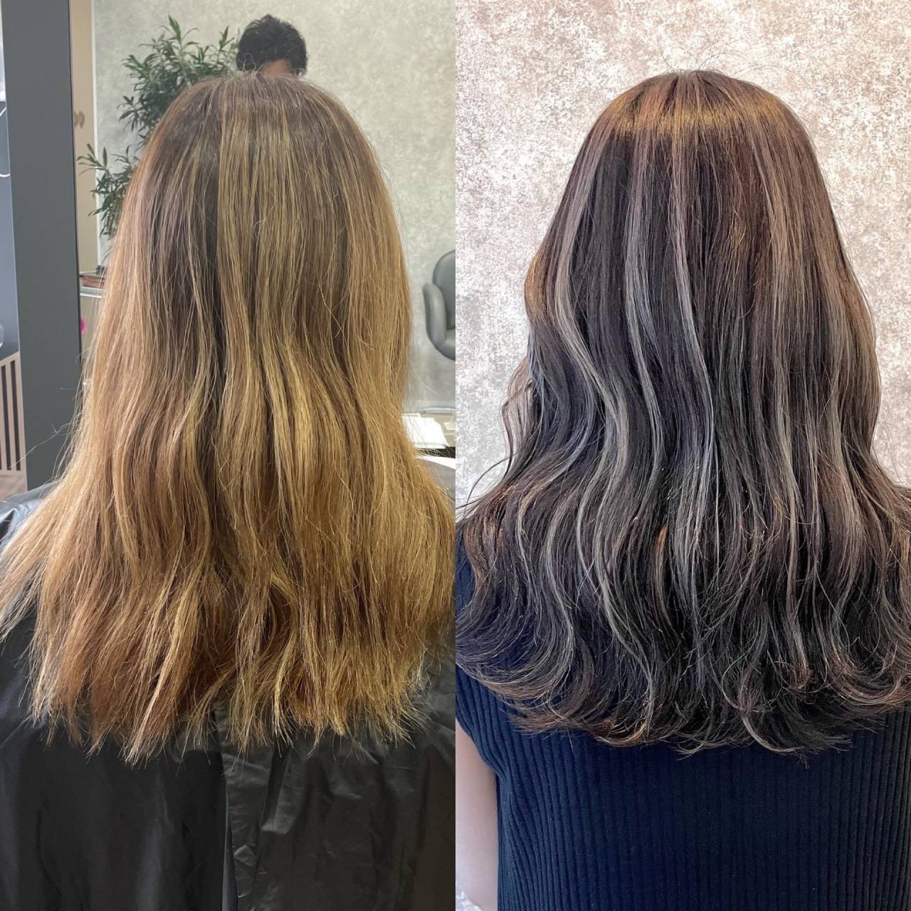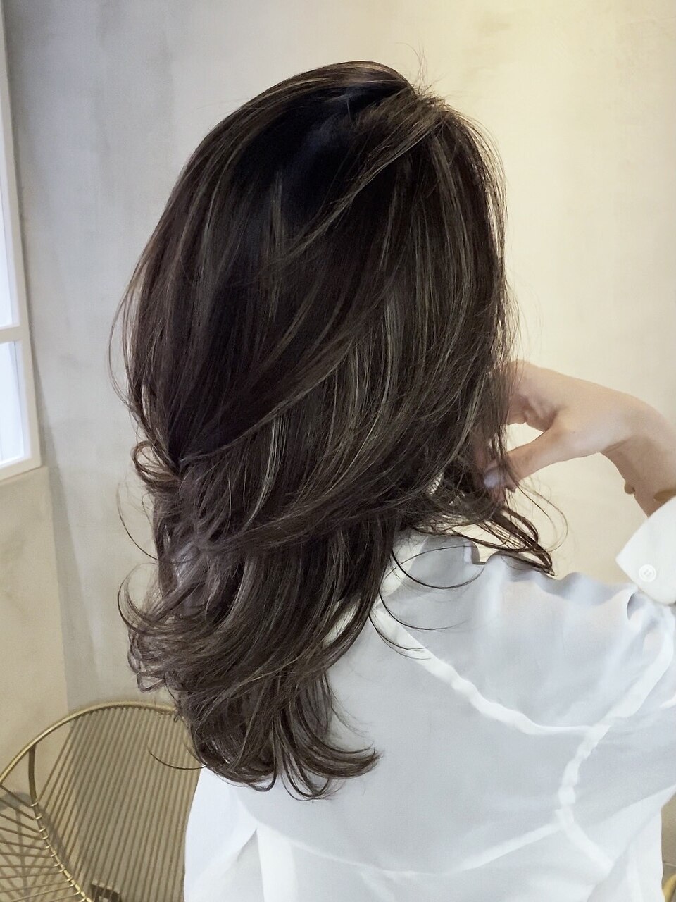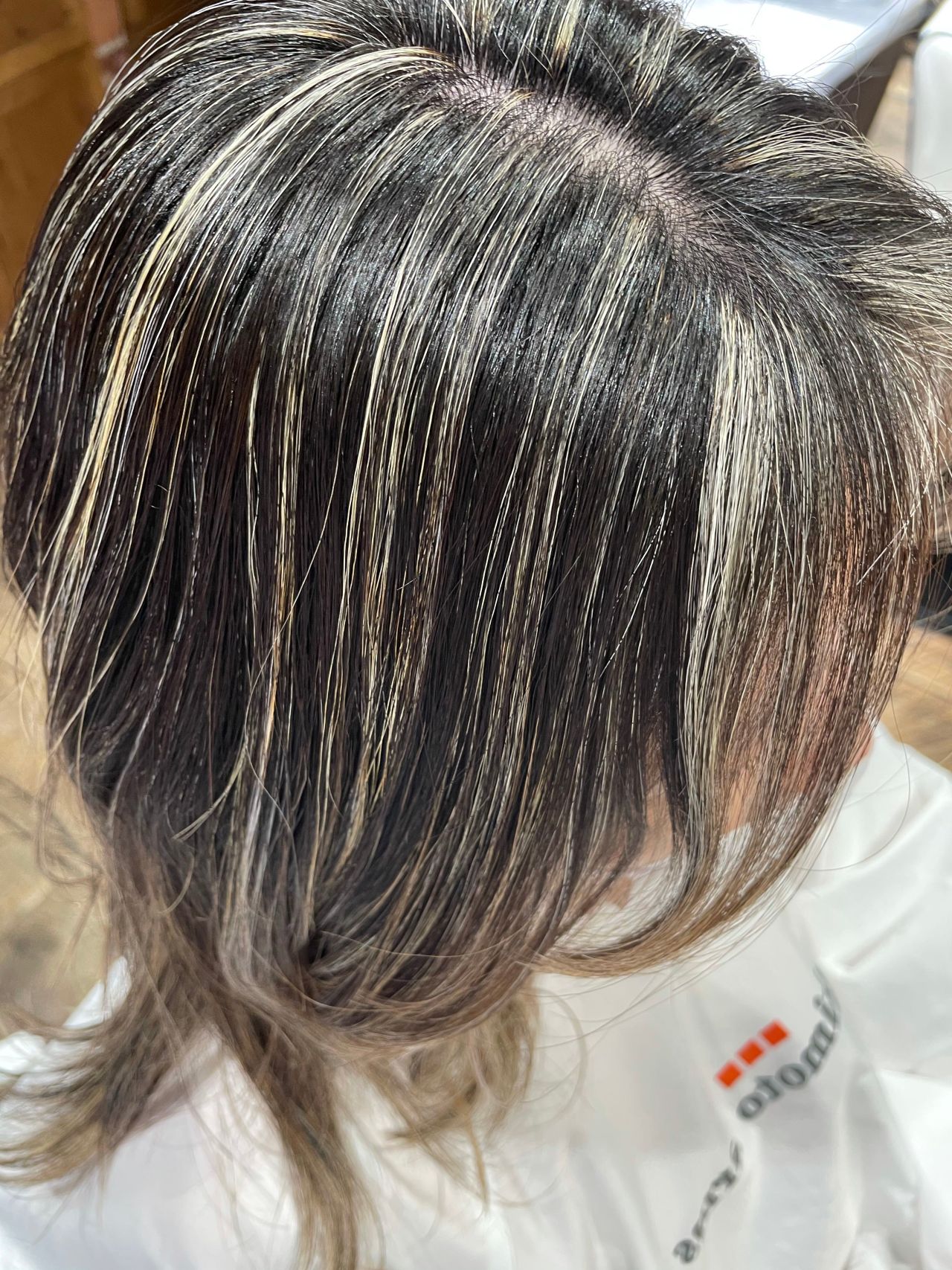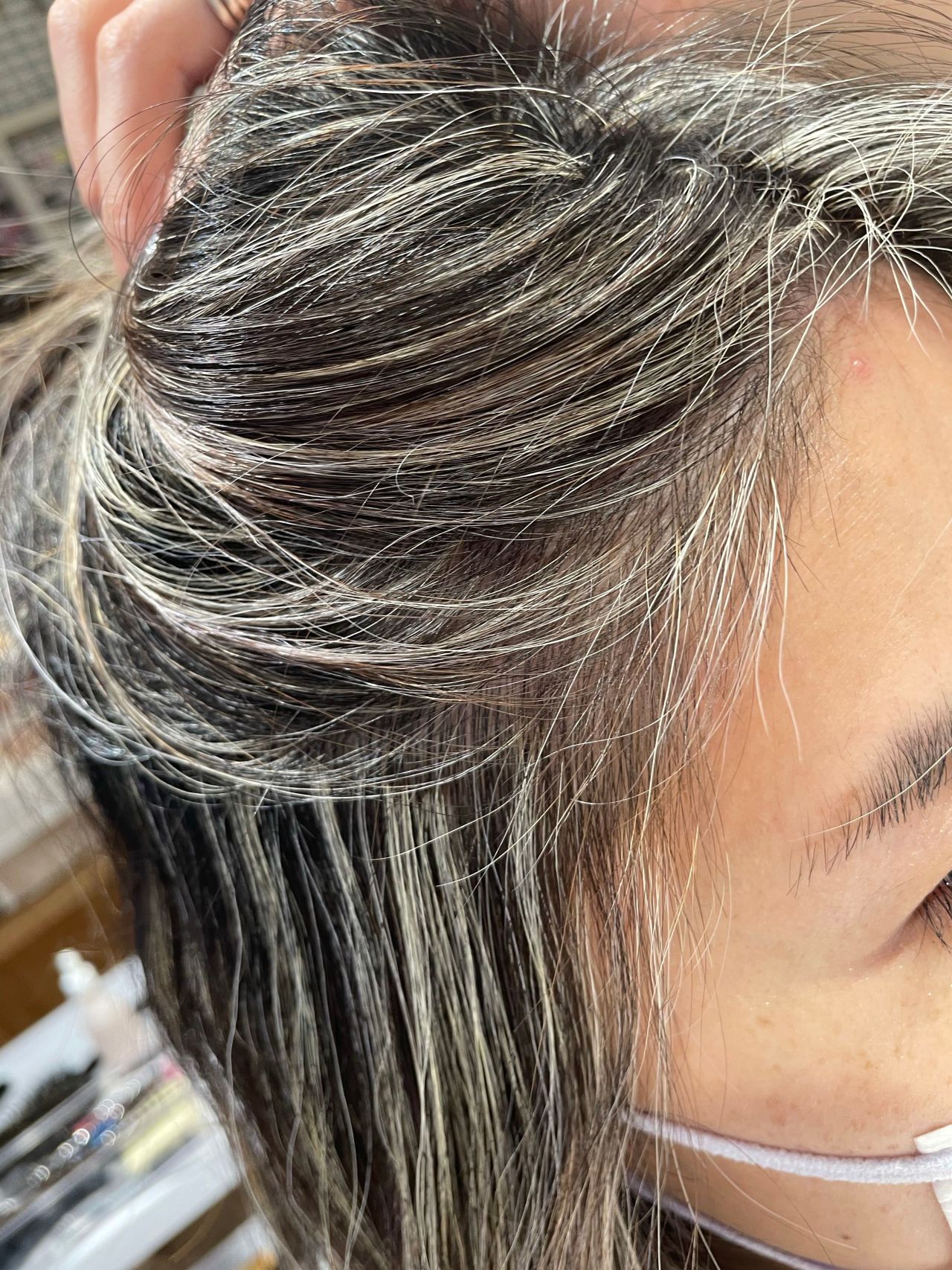 30代のお客様。白髪ぼかしの シークレットハイライト。
