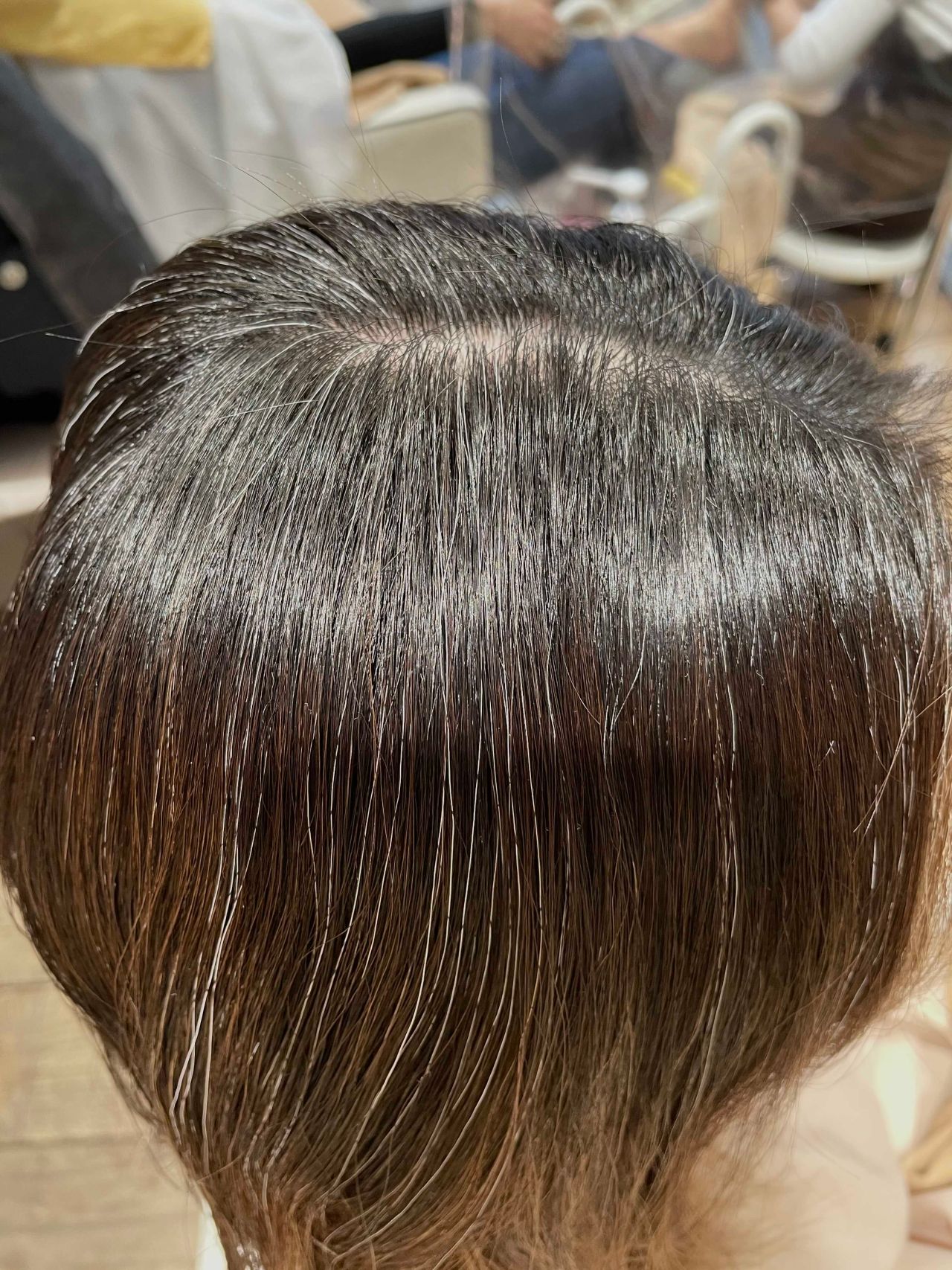 写真で解説⭐︎30代、出てきた白髪をハイライトでぼかすカラーとは! 地毛ベース編 美容室カキモトアームズ 青山店公式ブログ。