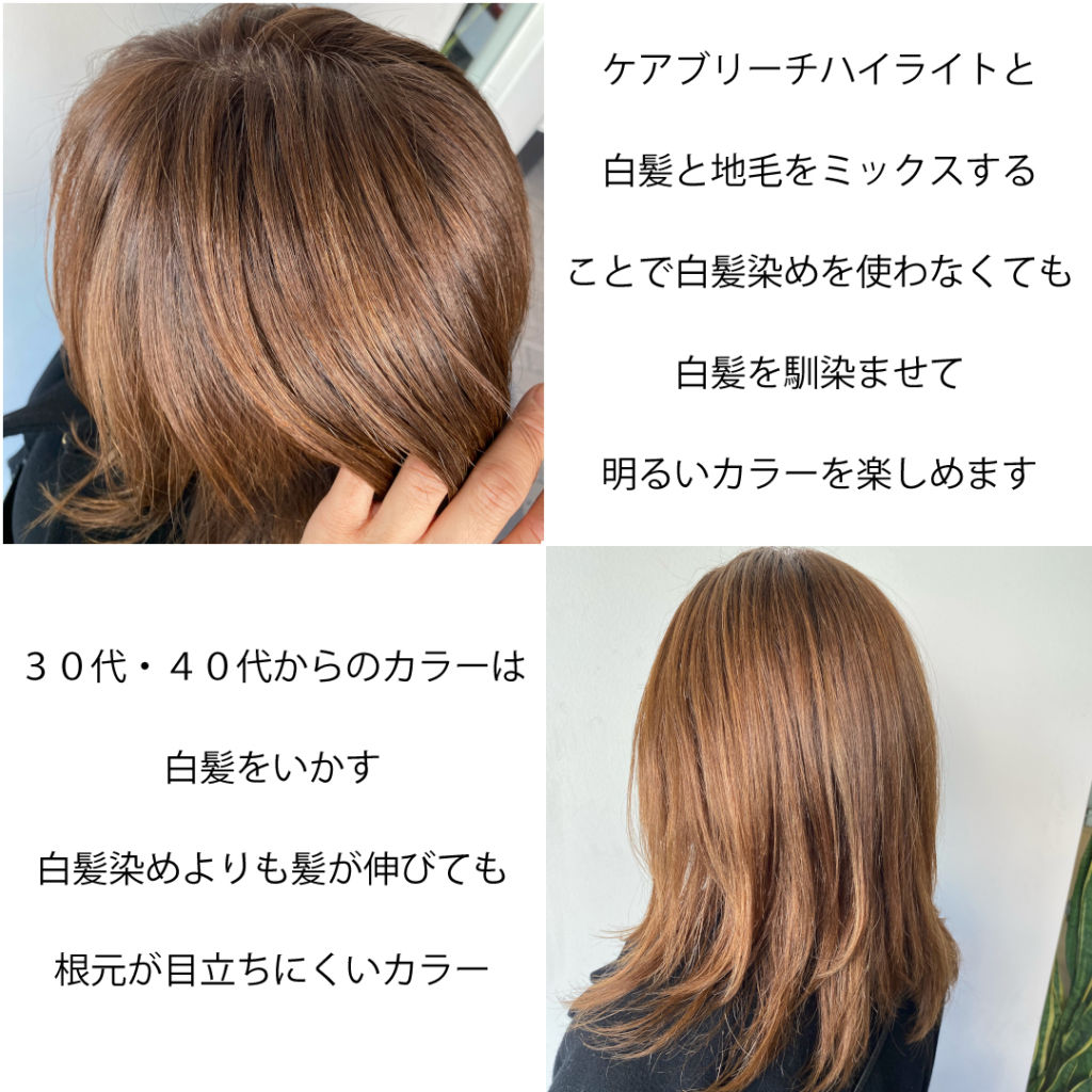 派手にならない白髪ぼかし"シングレイハイライト 30代40代50代の白髪で悩んでいる女性のための美容室。