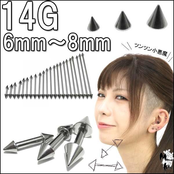 ボディピアス 14G ストレートコーンバーベル1.6mmシャフト6mm〜8mm コーン3mm・4mm・5mm BPBB-C14G-6-8ベーシック ボディーピアス 316L アンテナヘリックス。