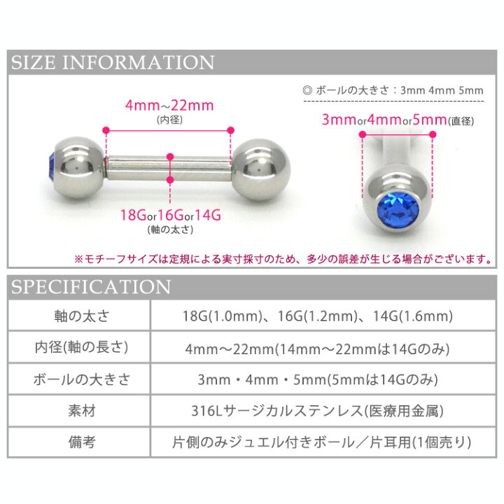 楽天市場 ボディピアス 18G 16G 14G ジュエル ストレートバーベル 軟骨ピアス ファーストピアス セカンドピアス トラガス ヘリックス 舌 ピアス ボディーピアス 内径4mm : ボディピアス専門店 PIERCING-NANA。