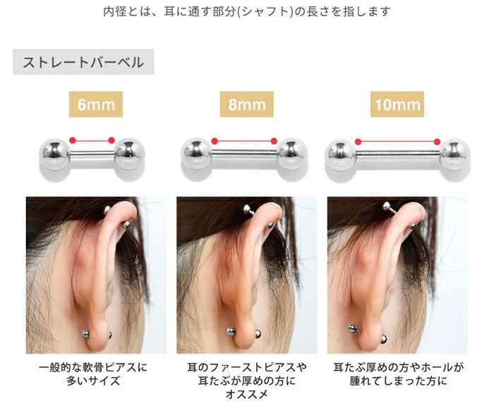 楽天市場 軟骨ピアス ボディピアス 16g 14g 18g 金属アレルギー対応 ファーストピアス ピアス つけっぱなし セカンドピアス 20gストレートバーベル 軟骨 ヘリックス トラガス サージカルステンレス キャッチ シャフト 4mm 8mm 10mm かわいい 可愛い シンプル :From da。