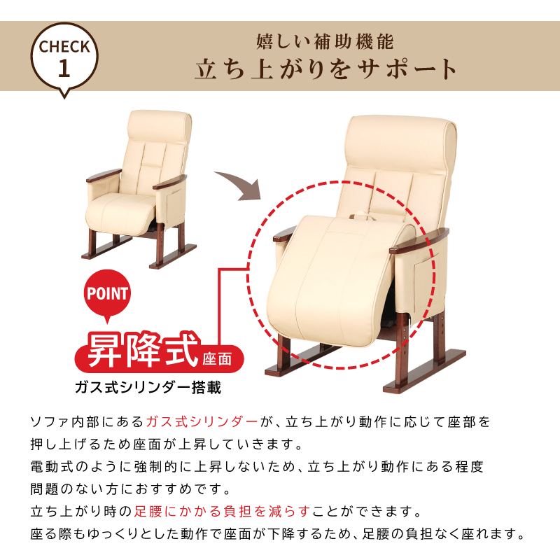 高齢者用立ち上がり補助具 最大100kgまでサポート 、高齢者、身体障害者、または障害のある高齢者向けのソファー立ち上がり補助シートCare-409-SAC 高座椅子 安楽椅子 パーソナルソファ 1人掛け 立ち上がり座面補助 肘付 リクライニング 座面高調整 ヘッド角度 介護 高齢者。