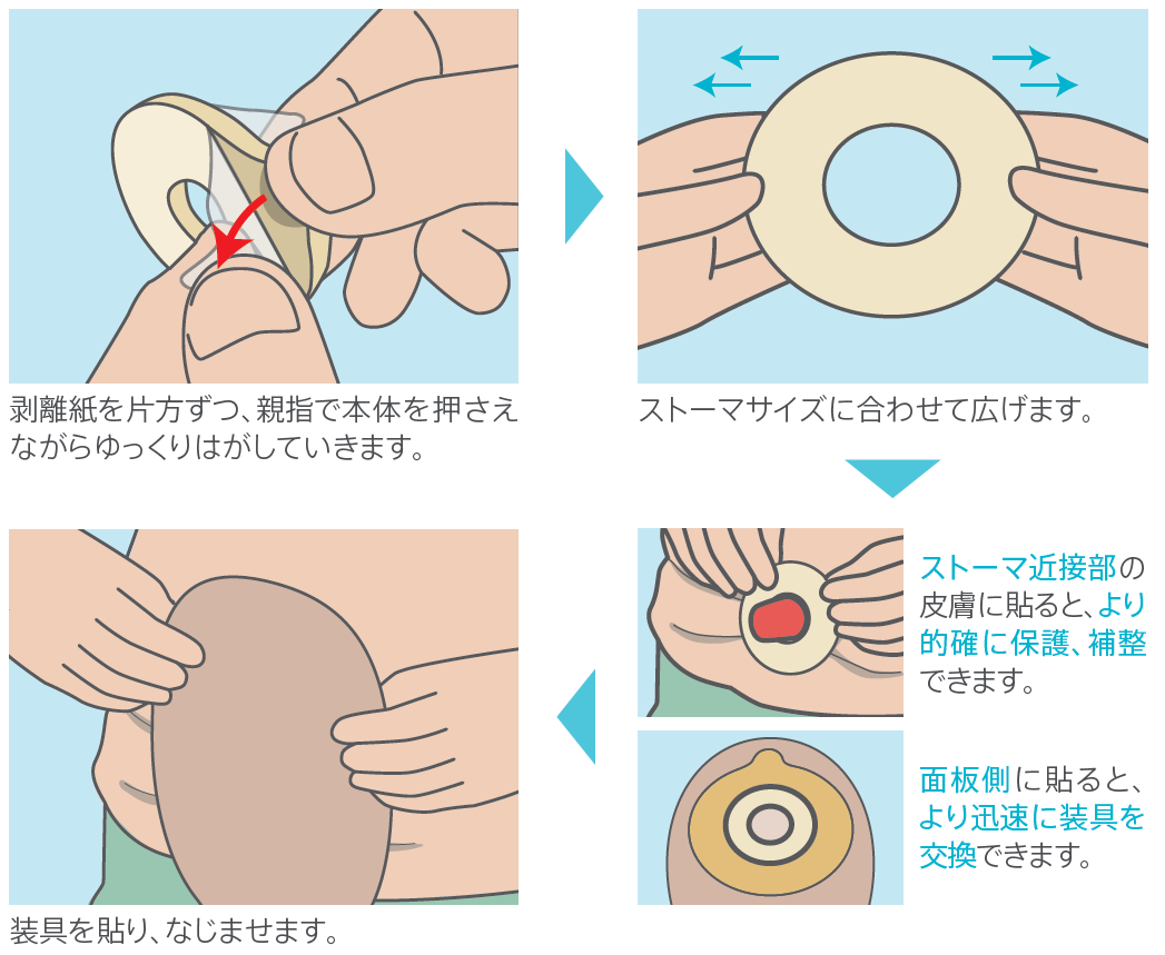 ストーマ装具の交換手順ザイタック通信ストーマ装具販売。給付券の申請から利用までサポートします。株式会社ザイタック。