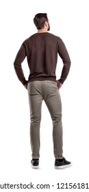 リラックスした姿勢で横を見る、現代的なフィットとカジュアルな服を着た男性の背景。後ろから来た男。モダンな飾り。誰も知らない人。写真素材1215618151Shutterstock。