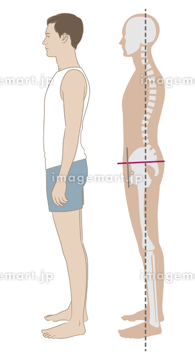 姿勢改善 姿勢矯正 猫背 ストレートネック 骨盤後傾 骨盤前傾の日本人男性のイラスト 全身横向きのイラスト素材113679221- PIXTA。