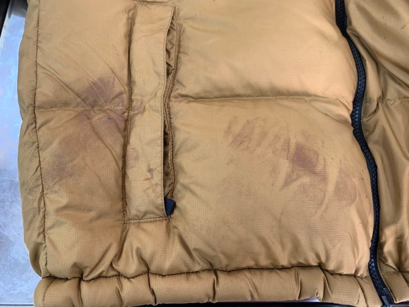 ダウンコート 機械油の染み染み抜き シミ抜き・しみ抜き 事例。