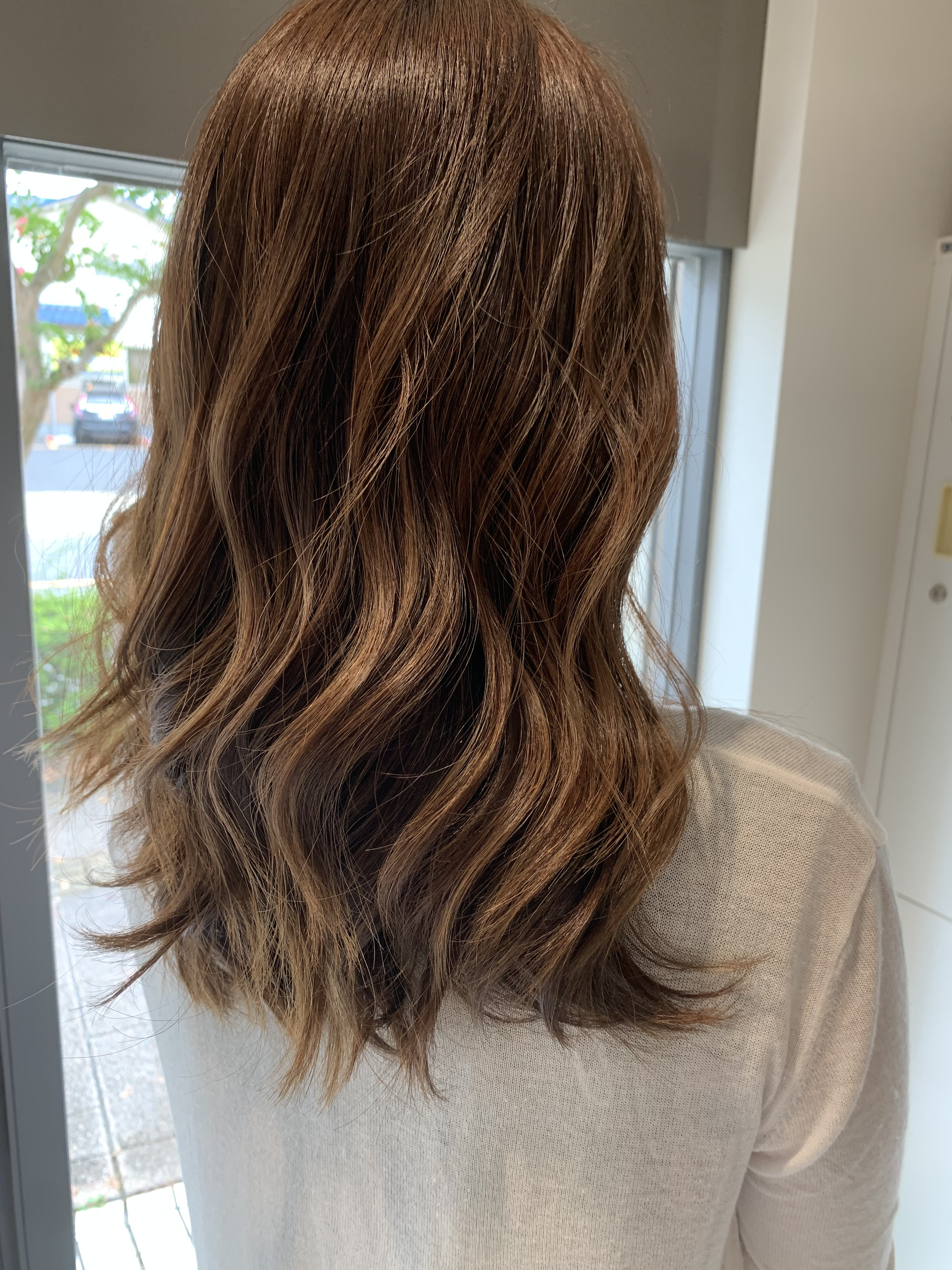 キャラメルミルクティー💕 明るめの色味でも傷んで見えないカラー🌟 大きめに巻いたゆるツヤウェーブヘア💓 カットのみ、カラーのみでもお気軽にお任せください♡* お客様に入らせて頂く際に必ず、 全身バランスや、印象、雰囲気を見て どんな髪型が似合うかイメージし。