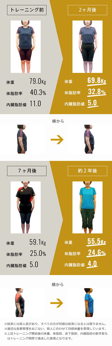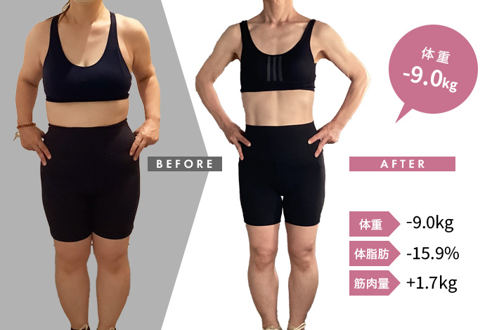 公式40代女性 筋肉量を落とさずにパーソナルトレーニングで体重-9.0kg・体脂肪率-15.9%達成!LIFE月額制で安い女性専用パーソナルジム。