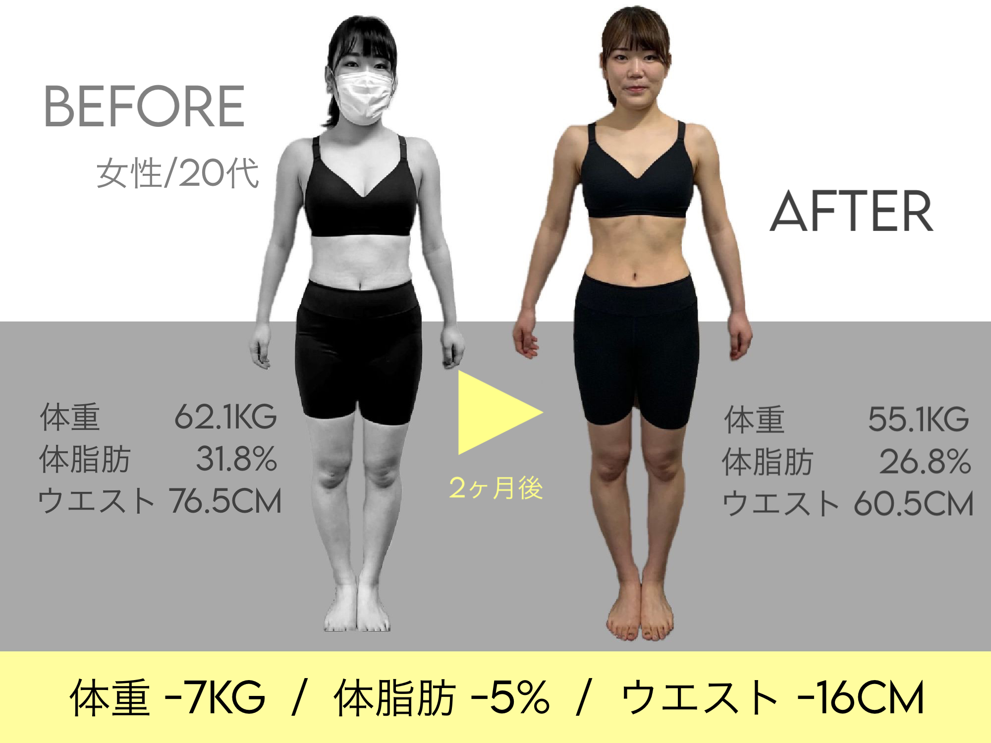20代 女性ビフォーアフターで変化を実感美しいボディメイクならパーソナルジム・Personal Gym FOROWへ。