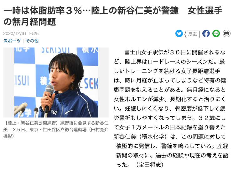 一時は体脂肪率3% 陸上の新谷仁美が警鐘 女性選手の無月経問題 1 2ページ- 産経ニュース。