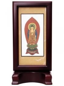 仏像 舟立阿弥陀如来 柘植製 ツゲ 丸座 3寸 金泥書 淡彩色 藤色 浄土宗・時宗あみだ様 アミダ 総柘植 つげ ツゲ 3寸 3.0寸 3.0寸三寸 丸台座 丸台 蓮華座 唐草光背 浄土宗 時宗 ミニ仏壇 仏壇用 ご本尊 御本尊 船立阿弥陀如来。