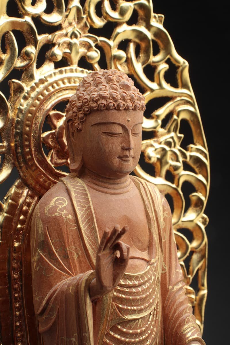 仏像 天然木製 阿弥陀仏 阿弥陀如来観音様 仏像 木彫 阿弥陀仏 阿弥陀如来 唐草光背 六角座 財前彫刻 桧木製 仏壇仏像 事業成就 置物 法事 仏事仏様 ご本尊様 - arbanminne byGMOペパボ 国内最大級のハンドメイド・手作り通販サイト。
