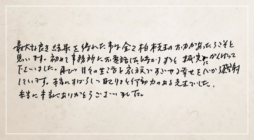 先生にお願いしてよかったと心から感謝しております。相続税のとびら。