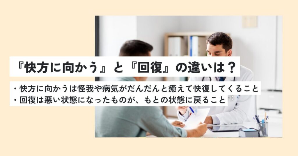 快方に向かう」の意味と使い方!「回復・快復」との違いは? 例文つき 語彙力.com。