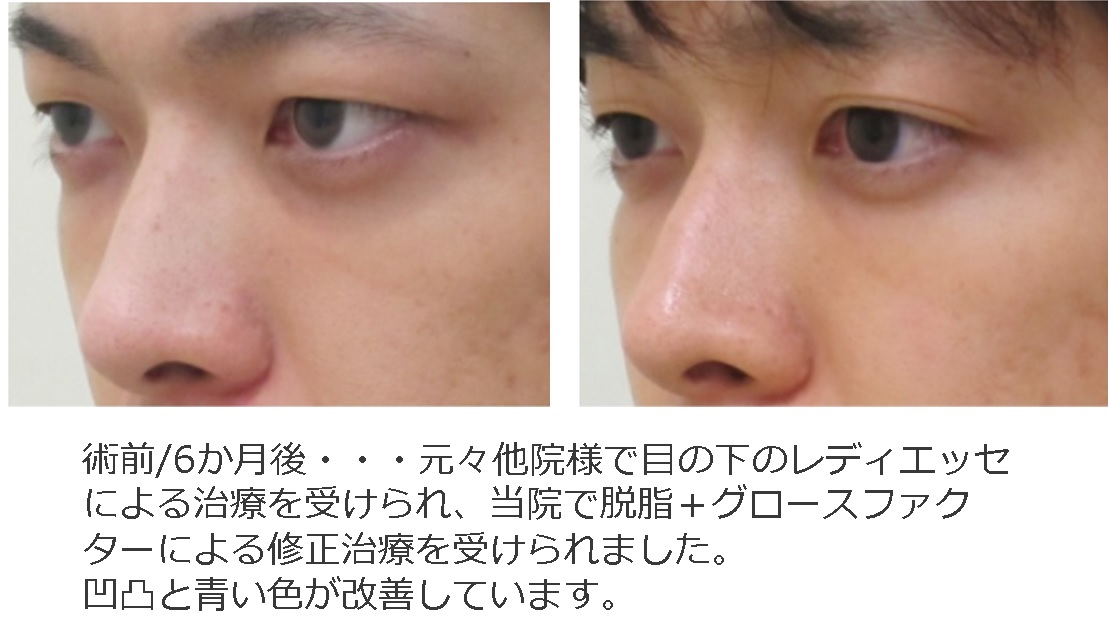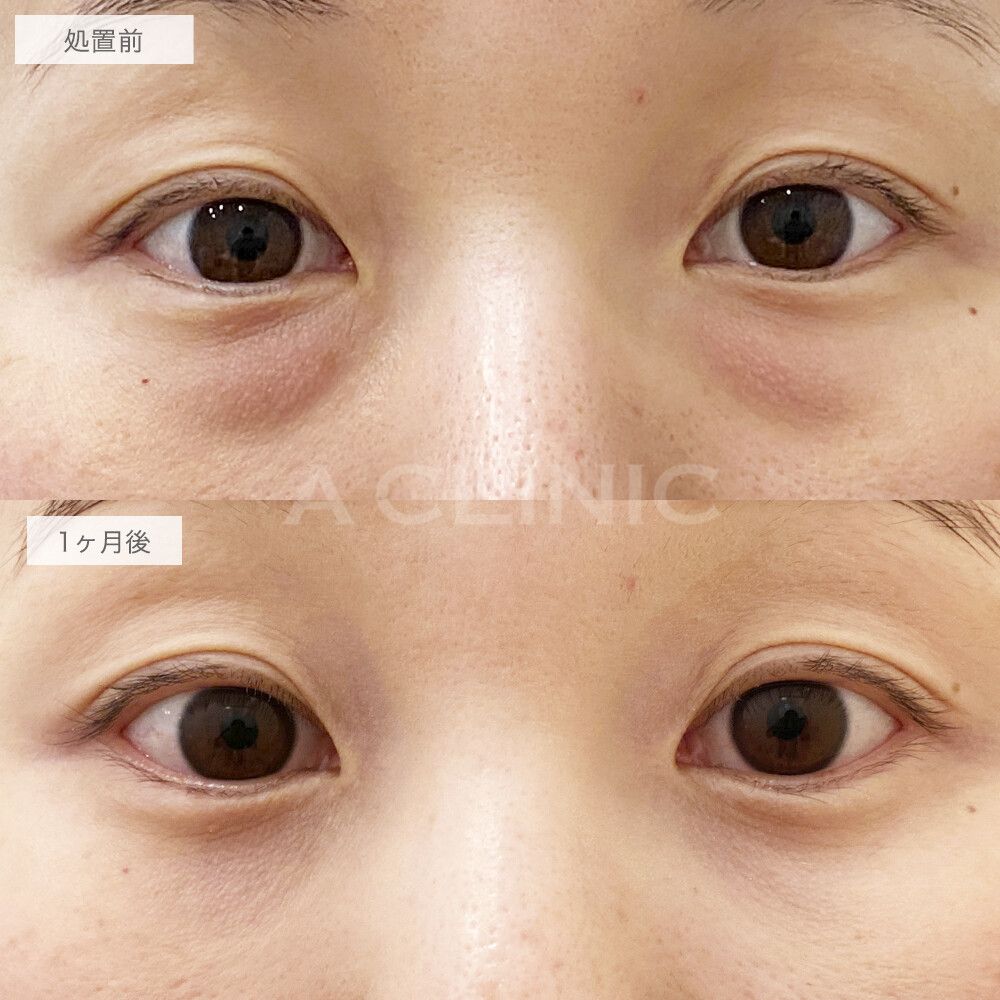 メイクでは隠せないクマでも解消できます!目の下のふくらみ取りの処置前と1ヶ月後の症例です 40代女性美容整形クリニックA CLINIC 公式。