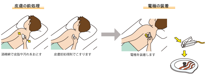 電極装着のポイント:電極装着の手順:きれいな心電図を記録するポイント~心室遅延電位測定編~正しくお使いいただくために医療関係の皆様へ日本光電。