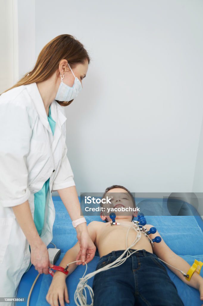 クリニックで男の子の心電図検査をしている女性医師 - 2人のストックフォトや画像を多数ご用意 - 2人, 35-39歳, 6歳から7歳 - iStock。