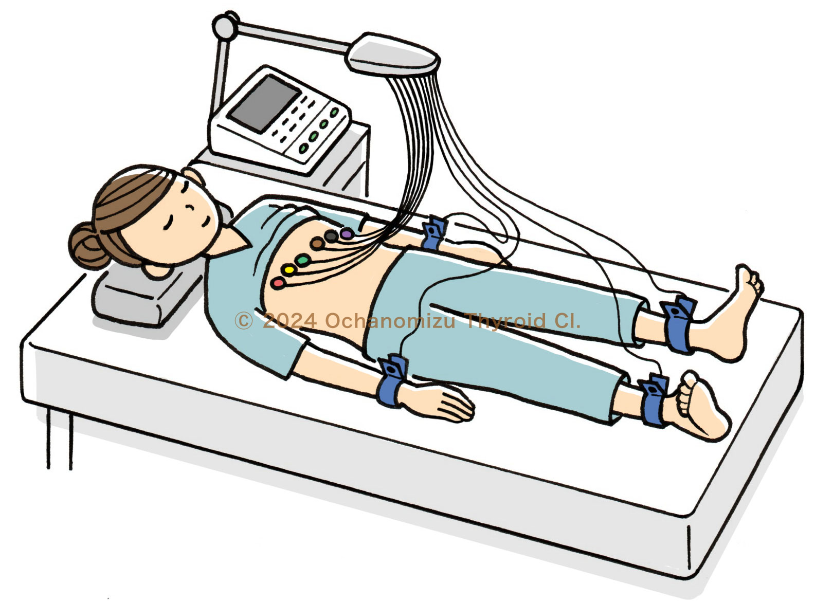 心電図検査についてです🍁 不整脈などがないか調べる検査で、 手足首と胸部に電極をつけて行います。 電極は少し冷たいですが、ご理解下さい😅長い靴下🧦は足首まで下ろして検査します。 女性の方は更衣室でストッキング、タイツを脱いで頂けますようお願いします。