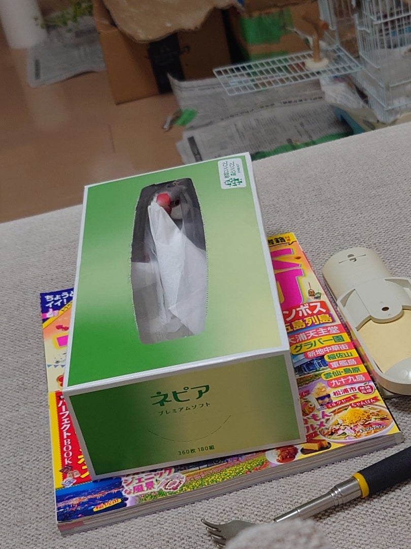 巣作りするシルバー文鳥の マメちゃん。いーくんのテキトーブログ。