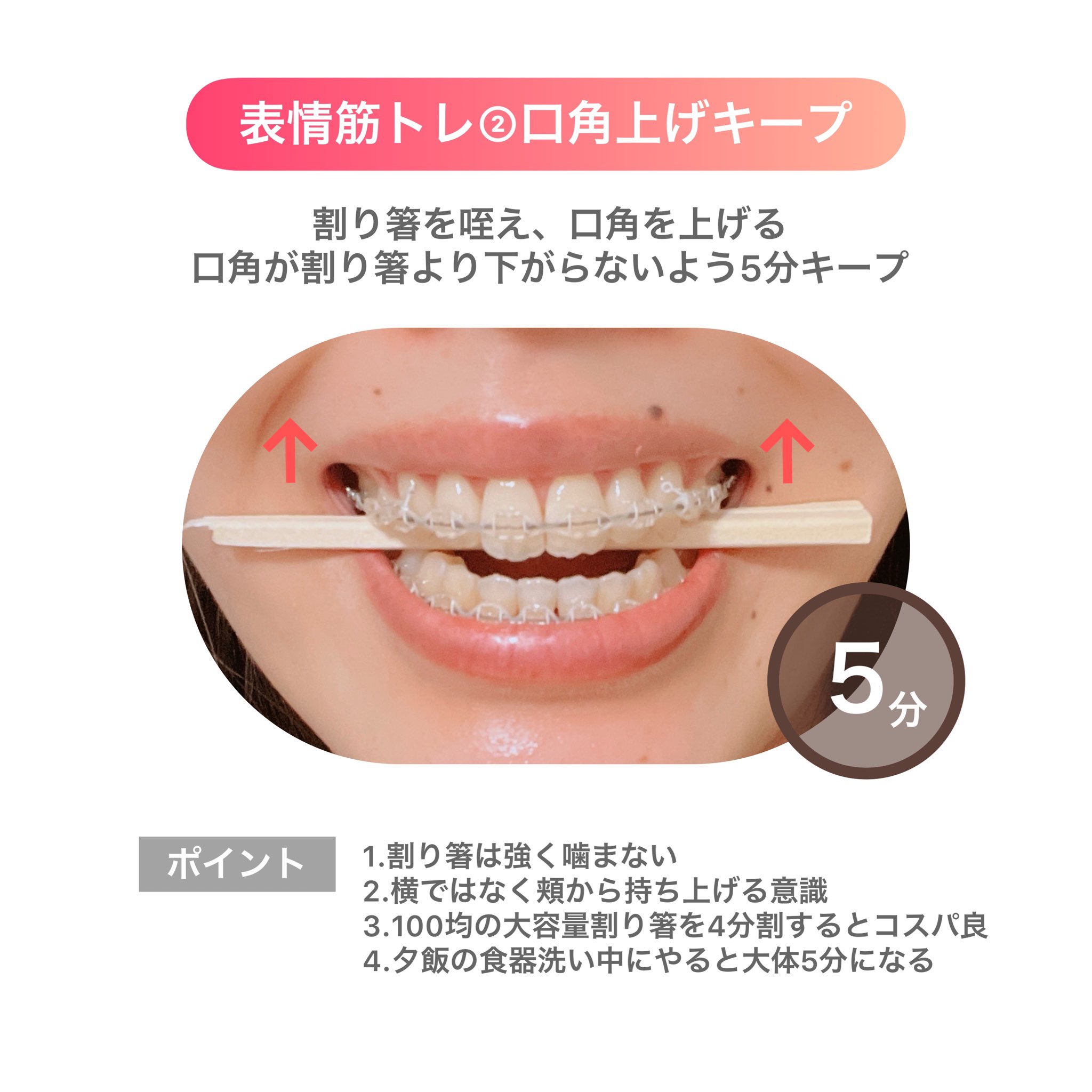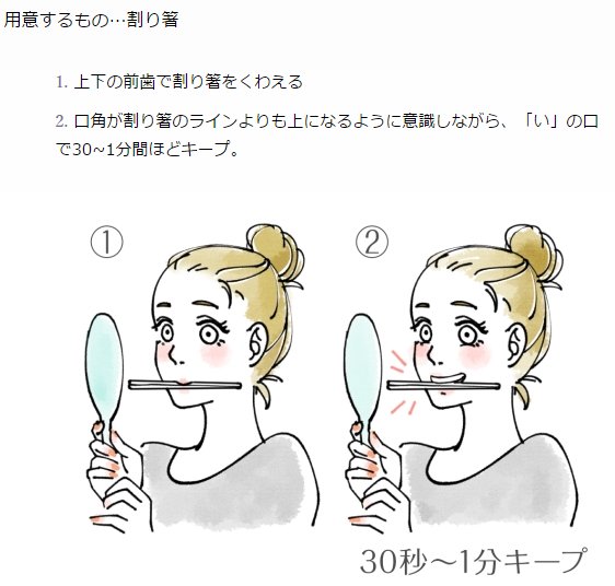グーガー on X: "割り箸1本あればできる 表情筋トレーニング表情筋を鍛えることでほうれい線の予防や解消に繋がります。 割り箸がなくても口角を上げるように意識するだけでも効果アリです!https:t.co EGBXyEoCEc https:t.co SKfCOsq9tR"X。