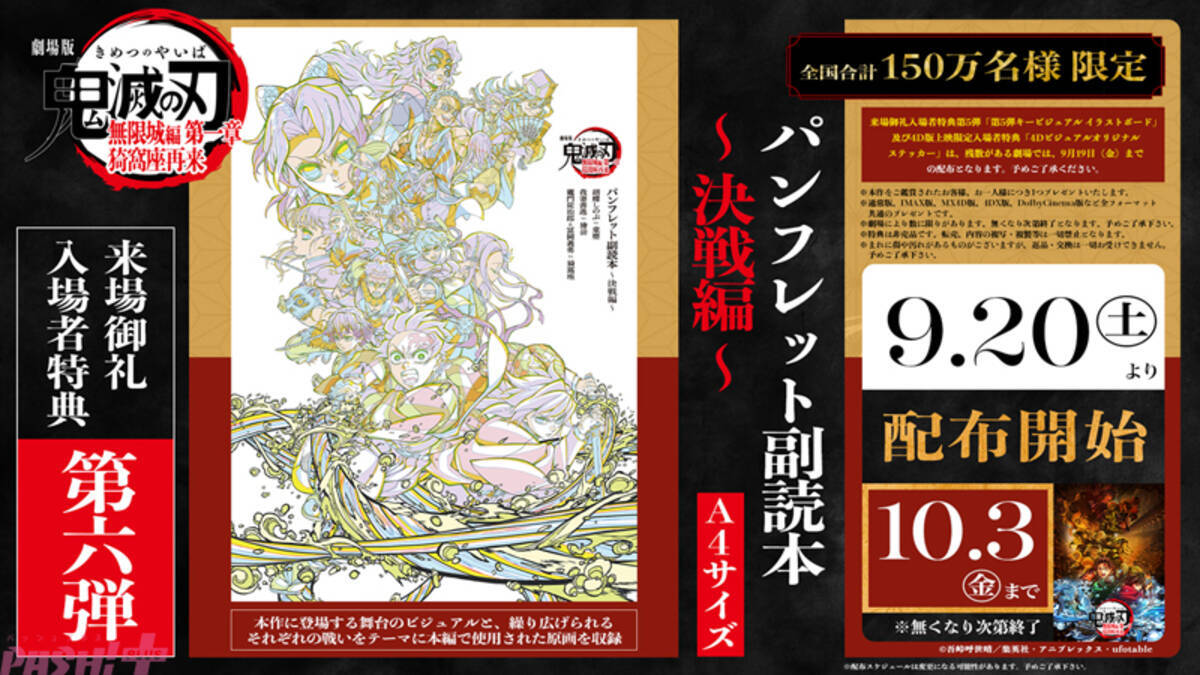 『劇場版「鬼滅の刃」無限城編』登場する舞台のビジュアルや本編で使用された原画を収録! 来場御礼入場者特典第6弾として「パンフレット副読本~決戦編~」が配布決定2025年9月17日- エキサイトニュース。