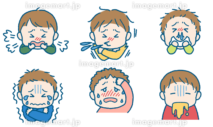 風邪をひいている子供。咳や発熱などの体調不良の症状。のイラスト素材109597640- PIXTA。
