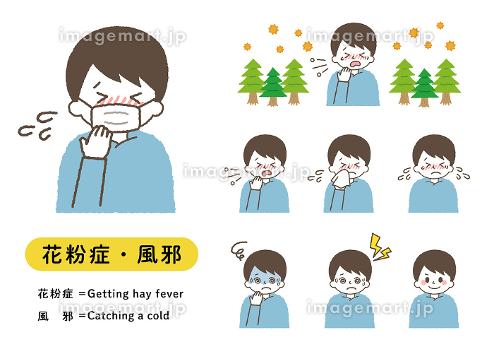 ウイルス性疾患の画像。インフルエンザや風邪の画像。咳をする人のイラスト。鼻水やくしゃみに苦しんでいる人。のイラスト素材・ベクター Image93852796。