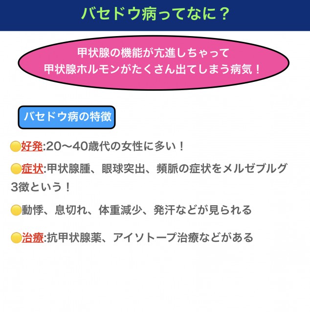 甲状腺機能亢進症・別名:バセドウ病KOMPAS – 慶應義塾大学病院 医療・健康情報サイト。