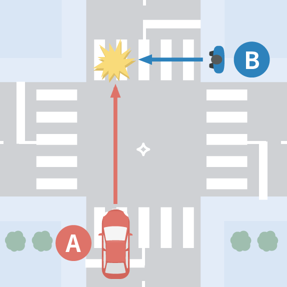 横断歩道を横断中に信号変更がない状況で起きた事故基本過失割合を解説。