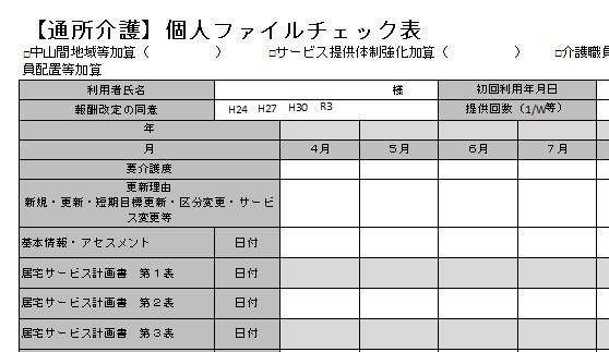 無料: 通所介護 個人ファイルチェック表 Excel版- 天晴れ介護サービス総合教育研究所。