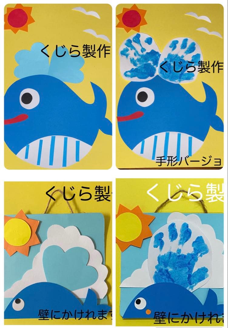 工作ネタ 夏の壁面飾りハイビスカス&海の生き物Hibiscus and SeaLife 7・8月高齢者レク・OT・デイ・保育おりがみ魚くじらクラゲかもめDIY。