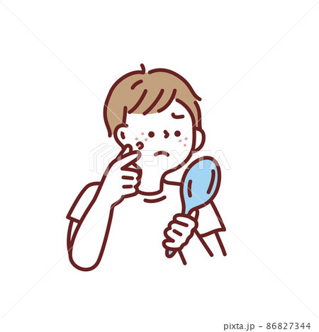肌の悩み、肌荒れ、ニキビのイラスト 男の子、鏡、ファッション、おしゃれ、美容、スキンケア のイラスト素材86827344- PIXTA。