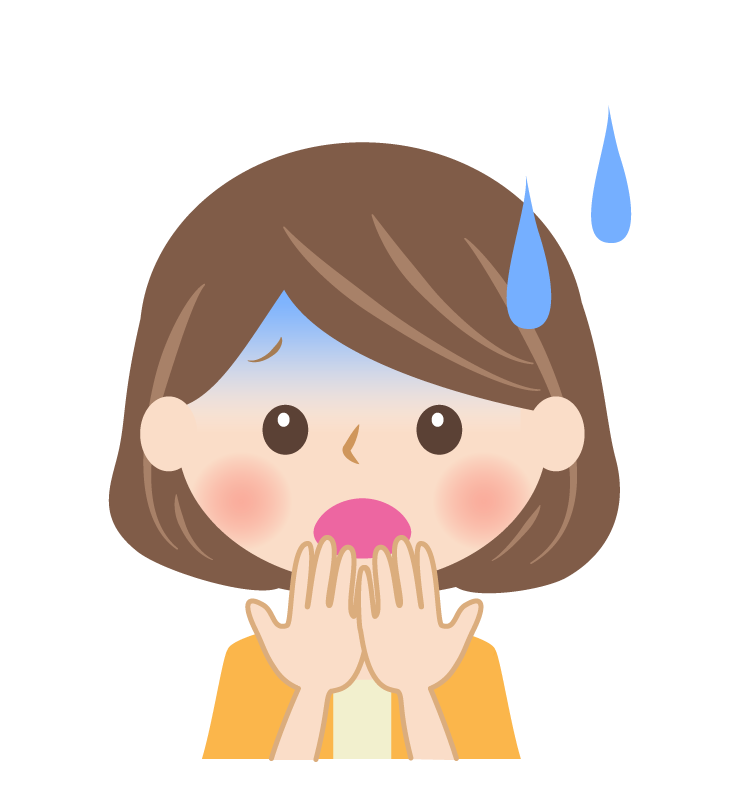 青ざめて冷や汗をかく女性の顔のイラストフリー素材 イラストミント。