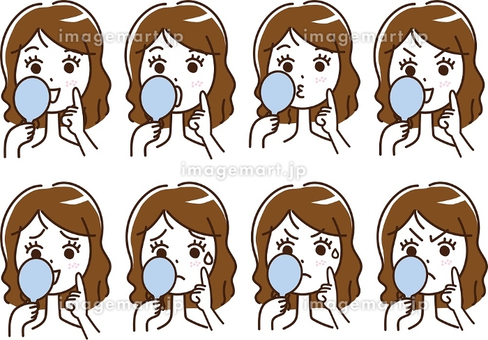 フリーイラスト16種類のお肌のトラブルを抱える女性のセットでアハ体験GAHAG著作権フリー写真・イラスト素材集 - GAHAG著作権フリー写真・イラスト素材集。
