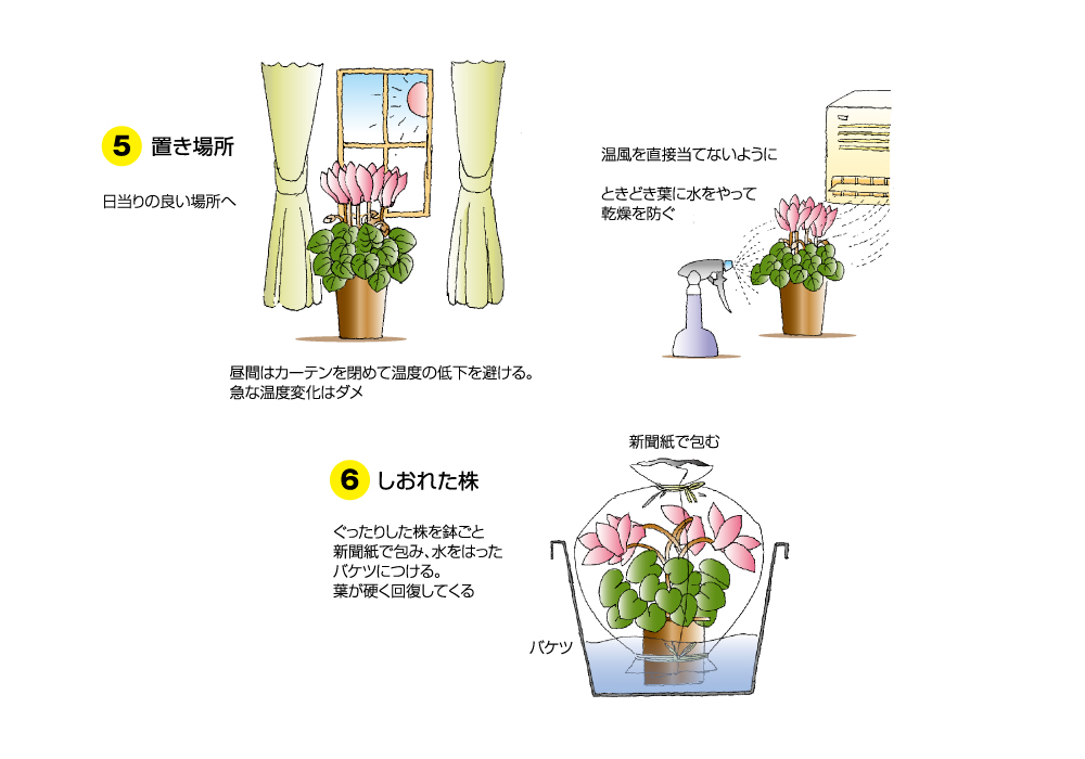 シクラメン しおれるときは?シクラメンの育て方.net。