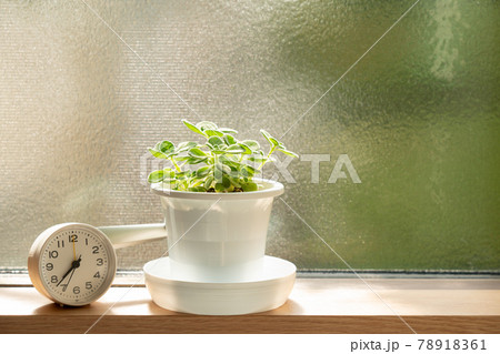 時計と室内で育てるハーブアロマティカスインテリアの写真素材78918361- PIXTA。