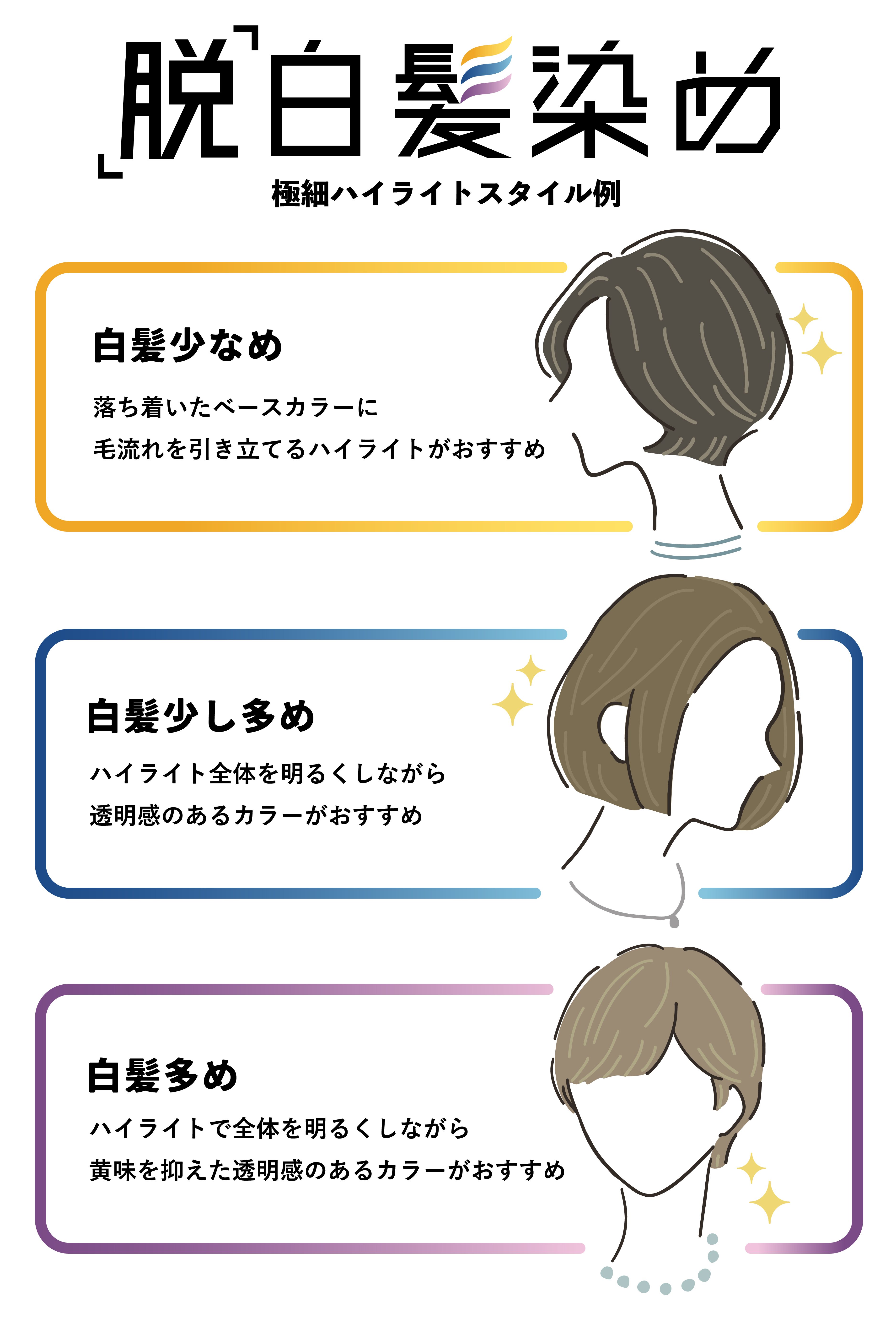 脱白髪染め!ハイライトでおしゃれヘアBefore Afterを5事例紹介。