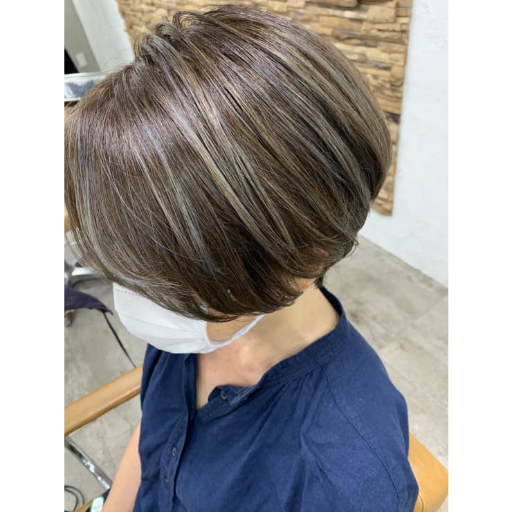 脱白髪染めハイライト白髪ぼかしリタッチハイトーンダブルカラー:L166018843ヒビヲ HIBIO のヘアスタイルホットペッパービューティ。
