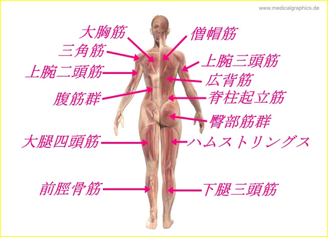 筋肉の名称図鑑女性筋トレのために各部位の名前・作用・鍛え方を図説Media for Women。