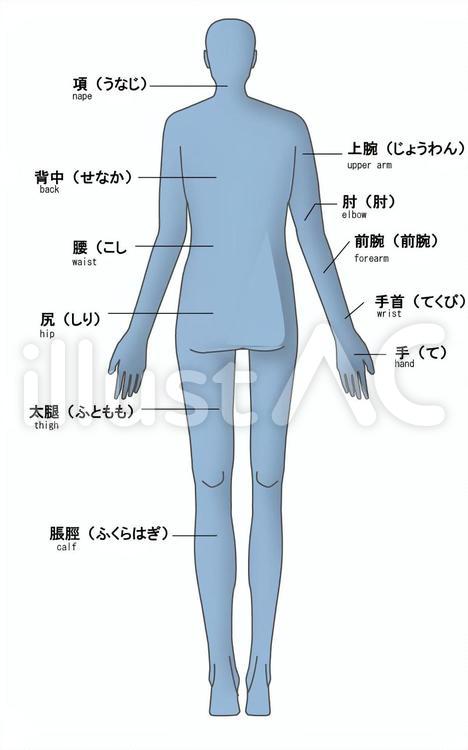 人の体の部位の名称 背面 英語付 イラスト - No: 954059無料イラスト・フリー素材なら「イラストAC」。