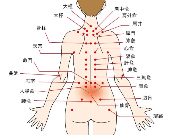 背中にある内臓の名前が付いたツボの重要性について名古屋市中川区高畑の蓬祥鍼灸院。