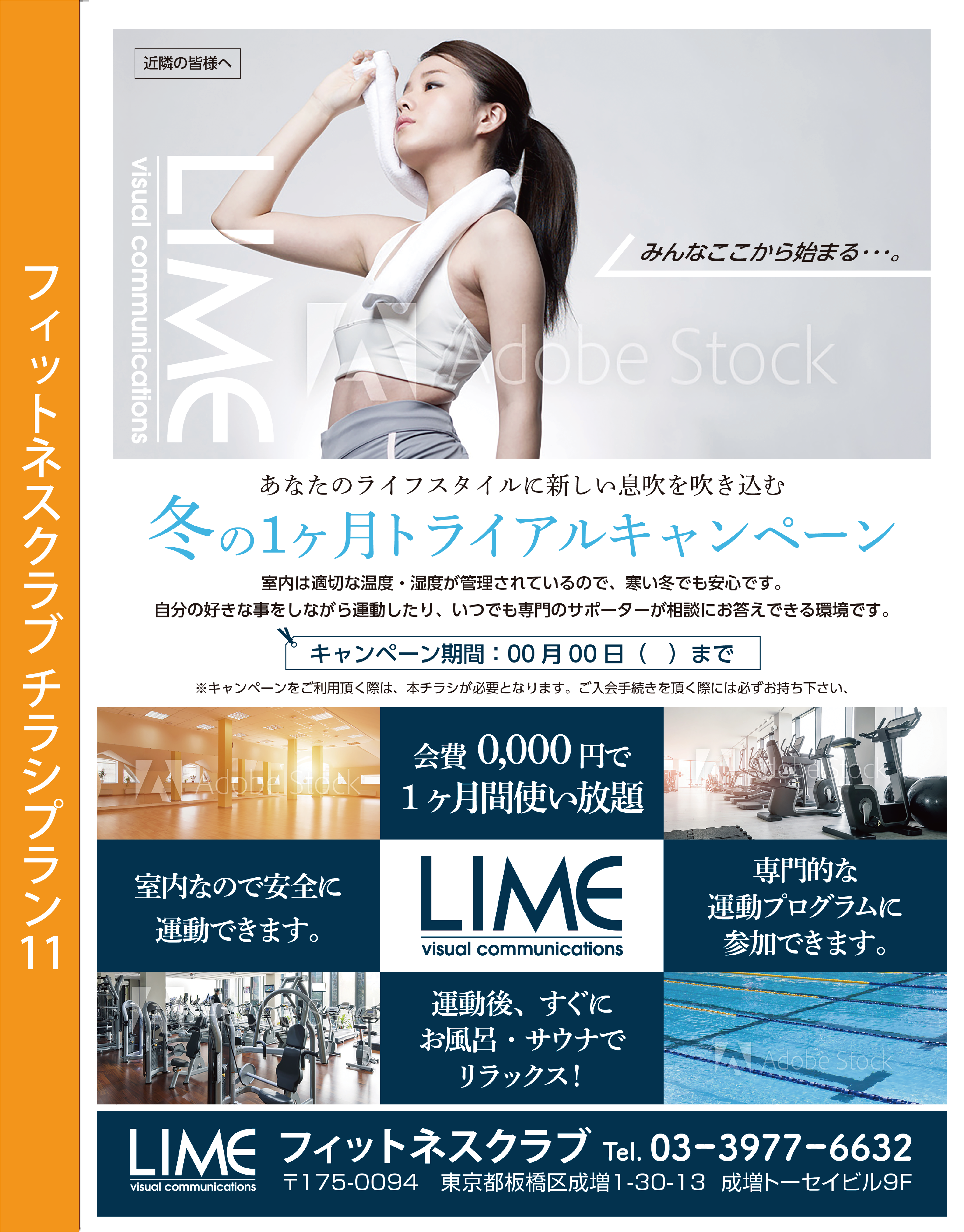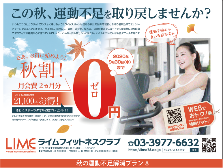 秋から冬の集客企画 フィットネスクラブ リーフレットテンプレート公開! – 株式会社ライム広告制作・写真撮影会社。