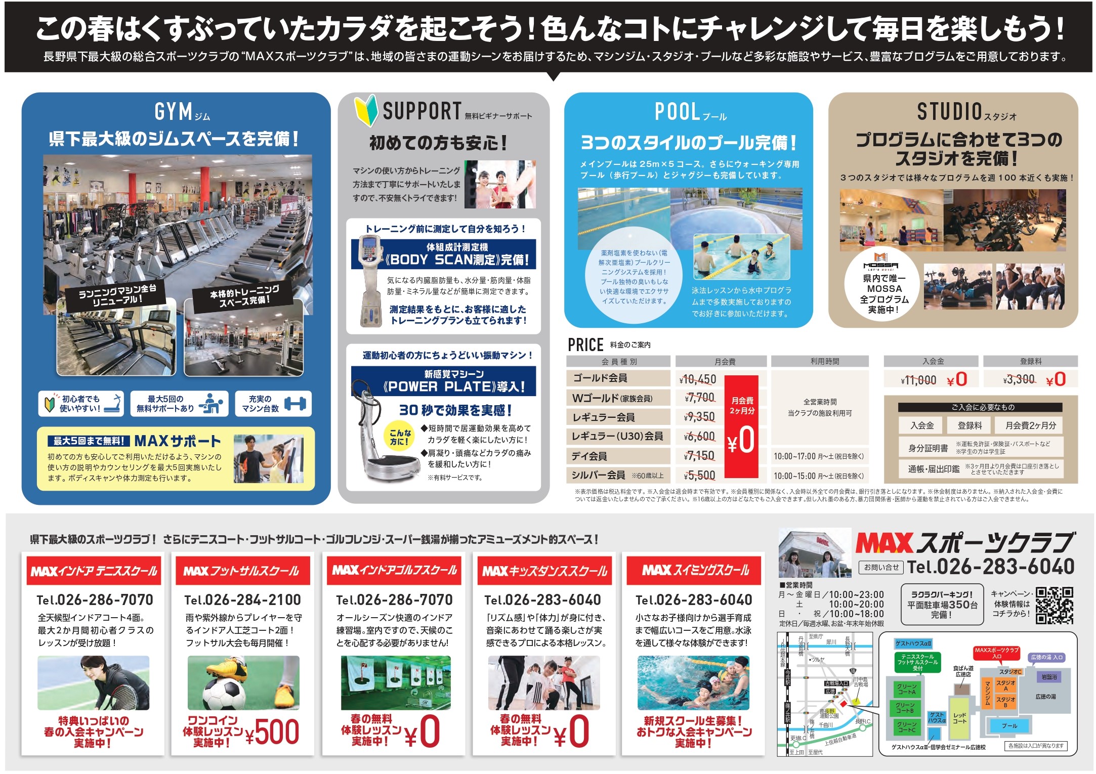 MAX_B4チラシ 10月02のコピーMAXスポーツクラブ長野県長野市県下最大級の総合スポーツクラブ。