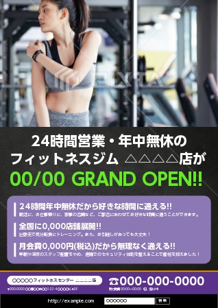 スポーツジム・フィットネスクラブ_開業・オープンチラシ・フライヤーの無料デザインテンプレート - ネット印刷グラフィック。