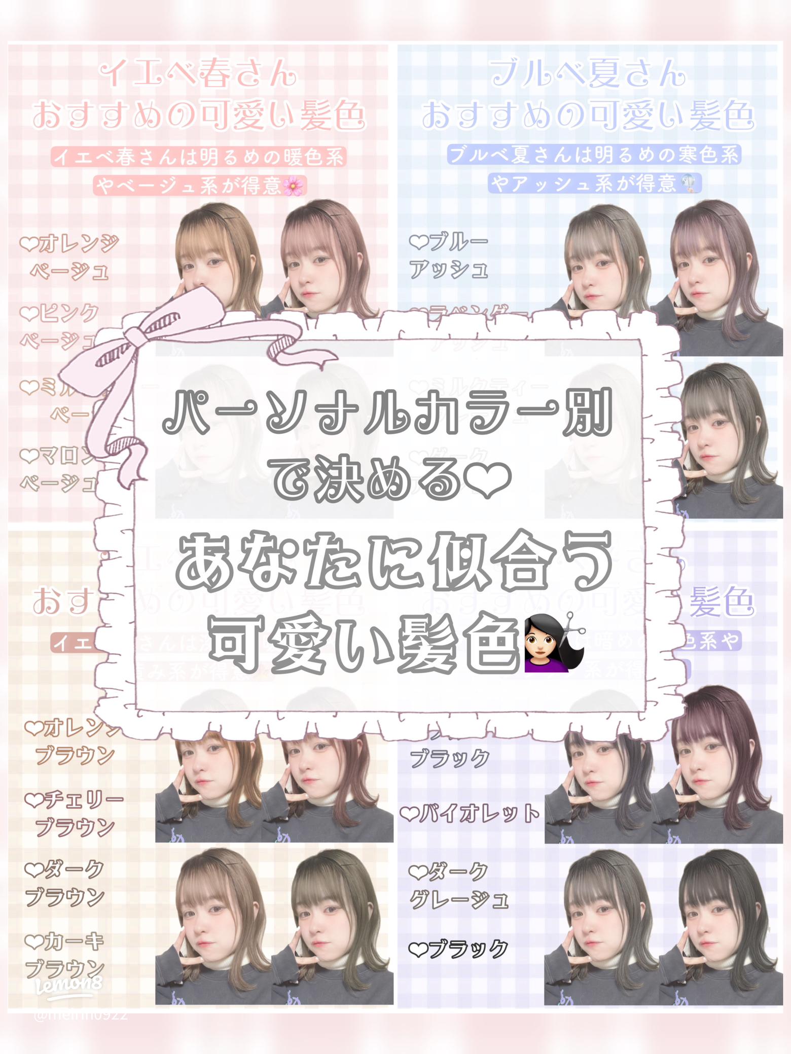 パーソナルカラー似合う髪色編!!髪色に 悩んでいる方是非参考に してみてください😁パーソナルカラーパーソナルカラー診断髪色オシャレ カラーグレイカラー白髪染めおしゃれ染めカラーオシャレ染めイエベ春ブルベ夏イエベ秋ブルベ冬春夏。